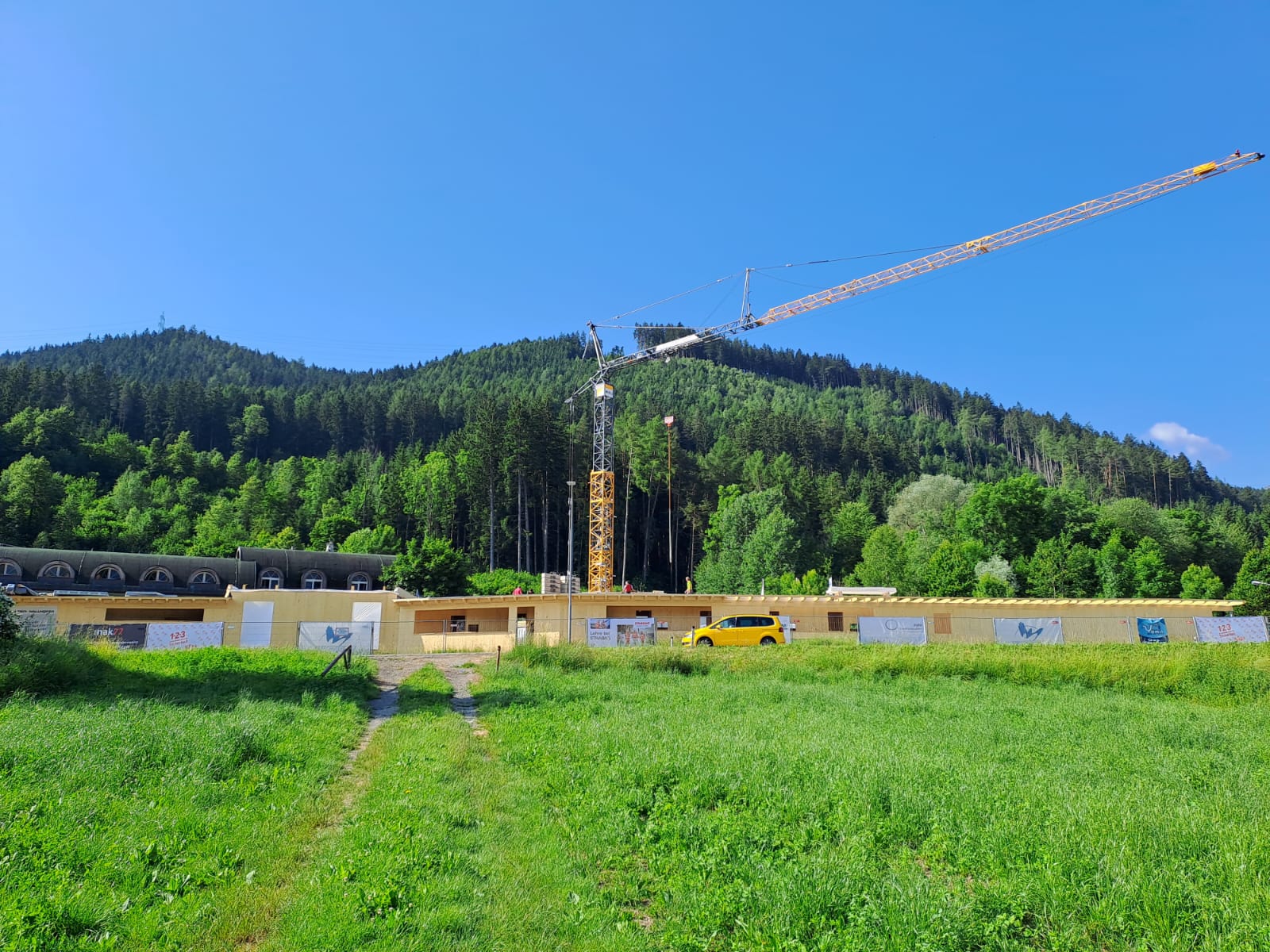 Hausmeisterhund Nero konnte seinen Augen nicht trauen, als er von seinem zweiwöchigen Urlaub zurück ins Tierheim Mentlberg kam. Schon von weitem konnte er die Umrisse des neuen Hundehauses erkennen. Die gesamte Bodenplatte, die vor seinem Urlaub noch unbebaut war, ist nun schon von der Holzkonstruktion des zukünftigen Hundehauses bedeckt.