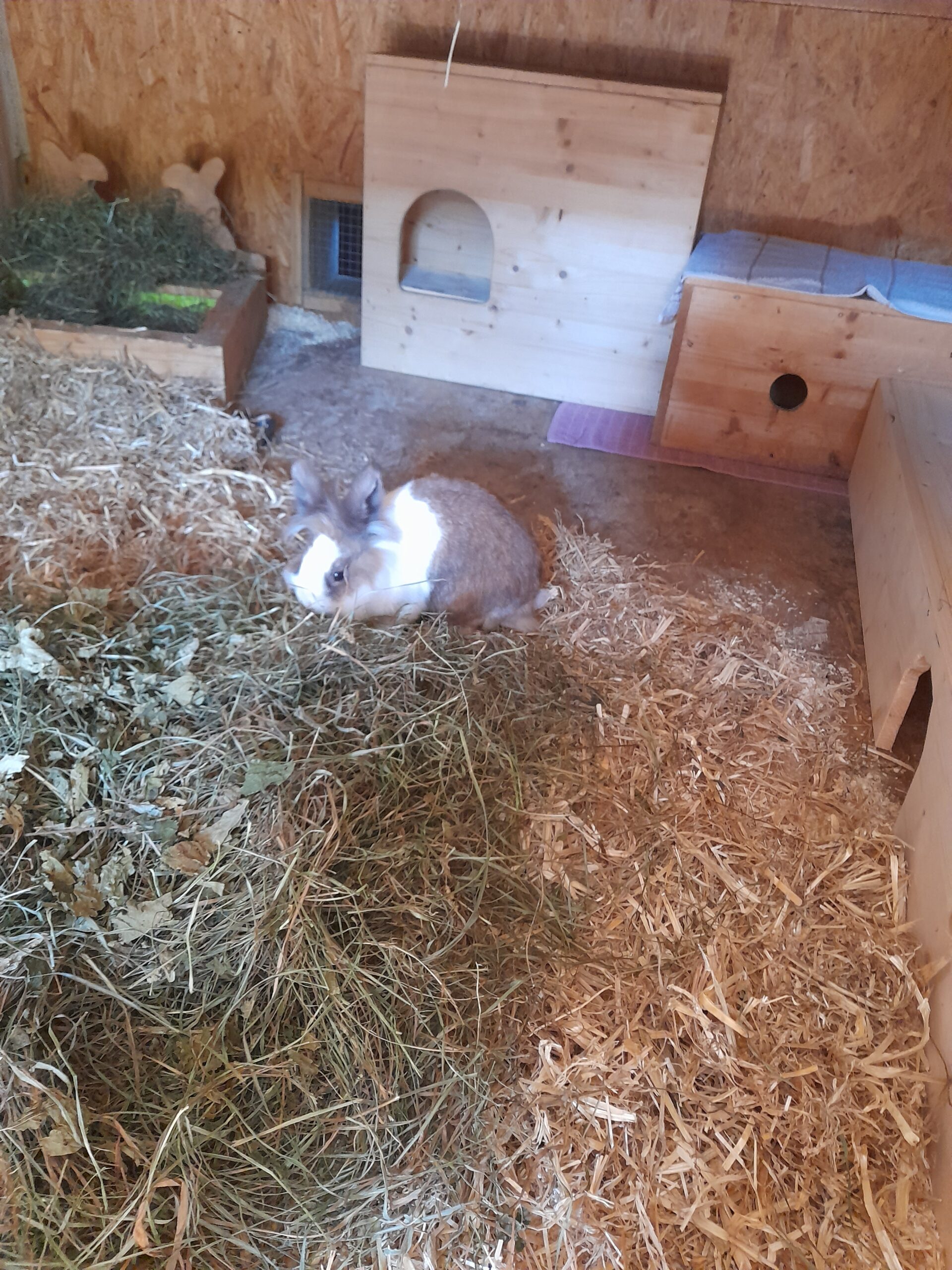 Da es zwischen uns beiden so gut geklappt hat, konnten wir nach 48 Stunden schon in unsere Kaninchenvilla umziehen. 🏠 Ich war schon wieder ein wenig überfordert, in der Kaninchenvilla soooo viel Platz und viele Versteckmöglichkeiten.. und mein geliebter Erwin. Erwin war auch ganz aufgeregt, er hat mir alles gezeigt und wollte mich nach draußen locken. Anfangs habe ich mich gar nicht getraut, doch Erwin gab keine Ruhe und dann habe ich halt ihm zuliebe mal einen Blick nach draußen geworfen und konnte es gar nicht glauben – ein großes Außengehege (von allen Seiten gesichert), bereits gebuddelte Erdgänge und Versteckmöglichkeiten – und das alles für mich und meinen Traummann Erwin. 😍