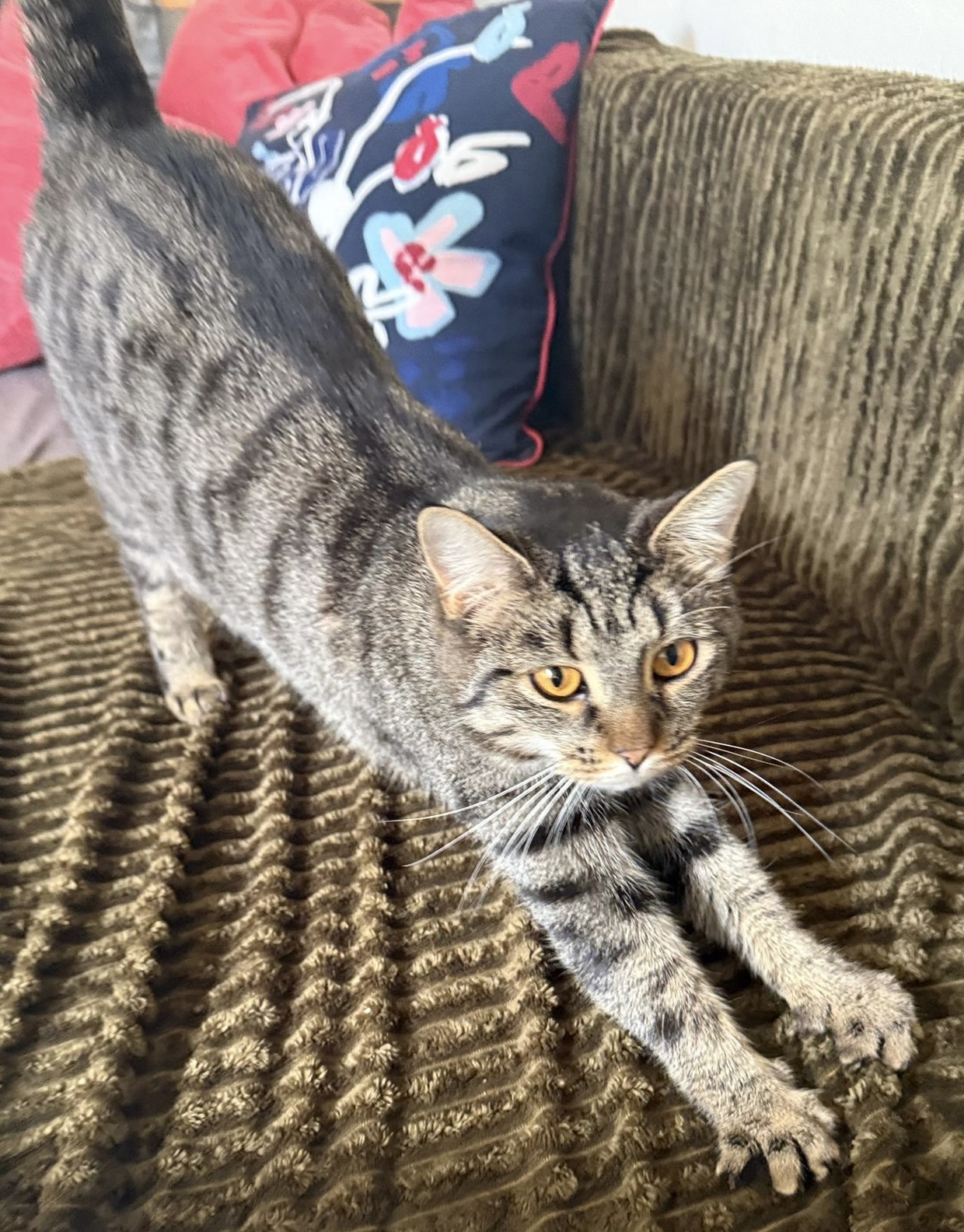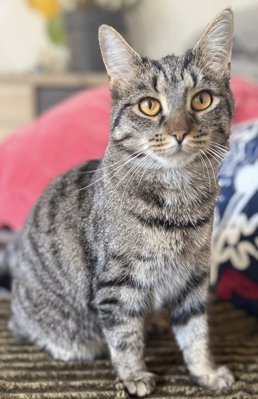 Beschreibung: Die Katze Babri ist Freigängerin, kastriert, nicht gechippt. Sie ist grau getigert mit beigem Bauch, ist eher klein und von normaler Statur. Auffällig sind ihre orangefarbenen Augen