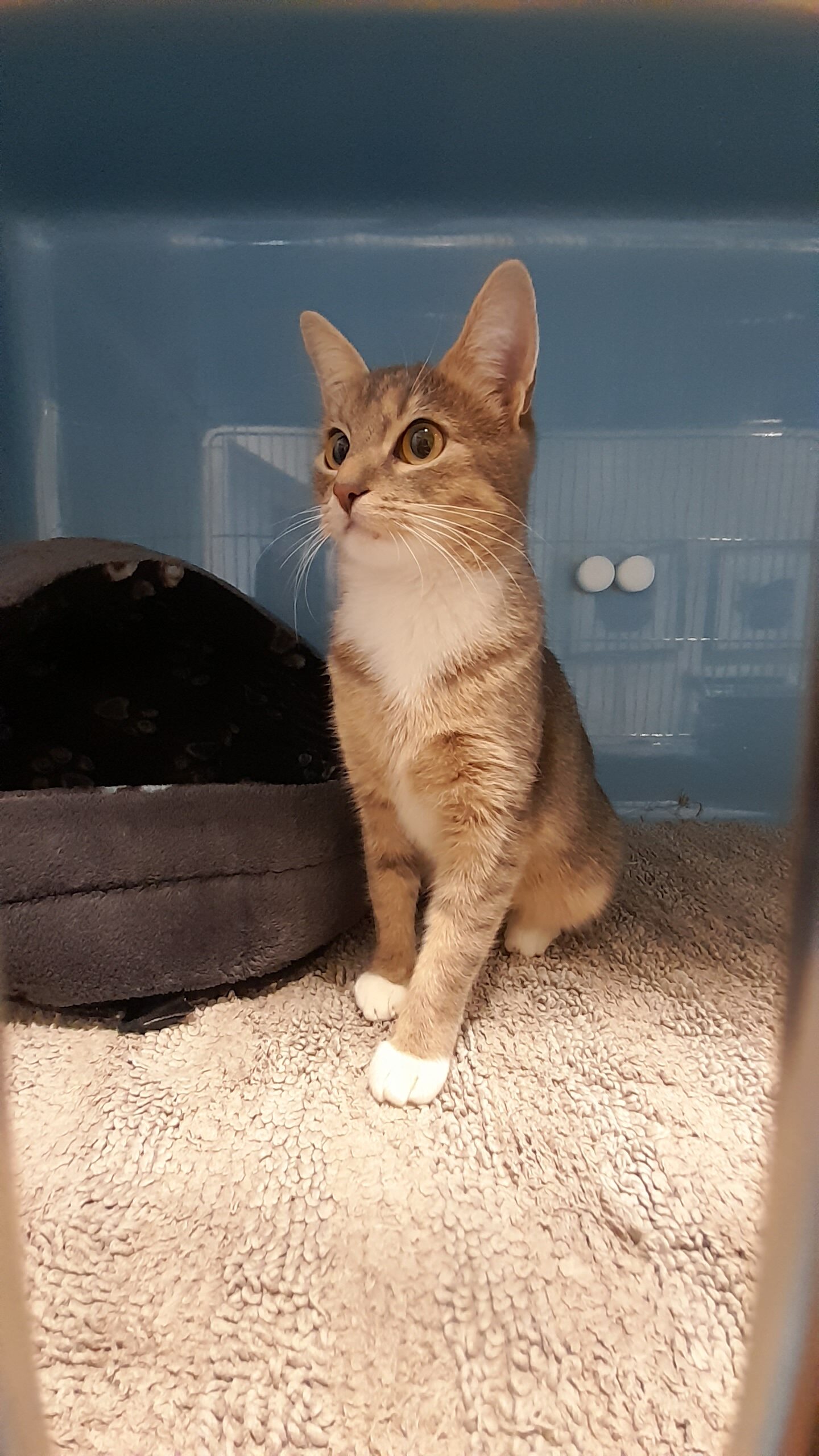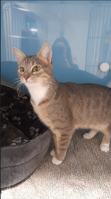 Beschreibung: Diese Katze wurde gefunden und zu den KUFvets Tierärzten gebracht. Es handelt sich um eine weibliche, relativ kleine und schmale, nicht gechippte Katze.