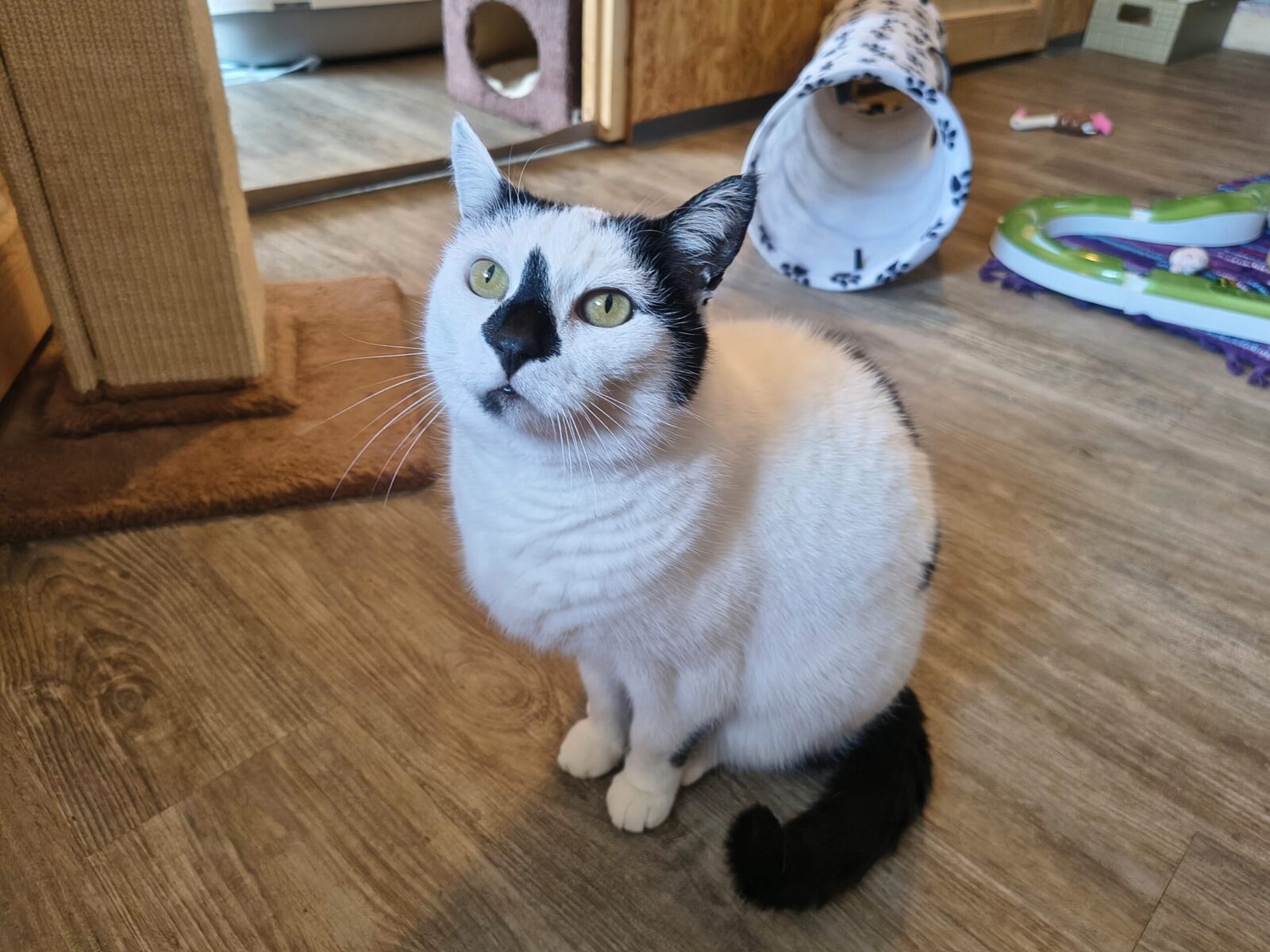 Wir suchen für sie ein Zuhause in ähnlicher Umgebung wie bei uns (ländliche/bäuerliche Gegend), wo sie weiterhin jederzeit auf die Streif gehen kann – Katzenklappe ist sie gewohnt. Ganz kleine Kinder sollten nicht vorhanden sein.