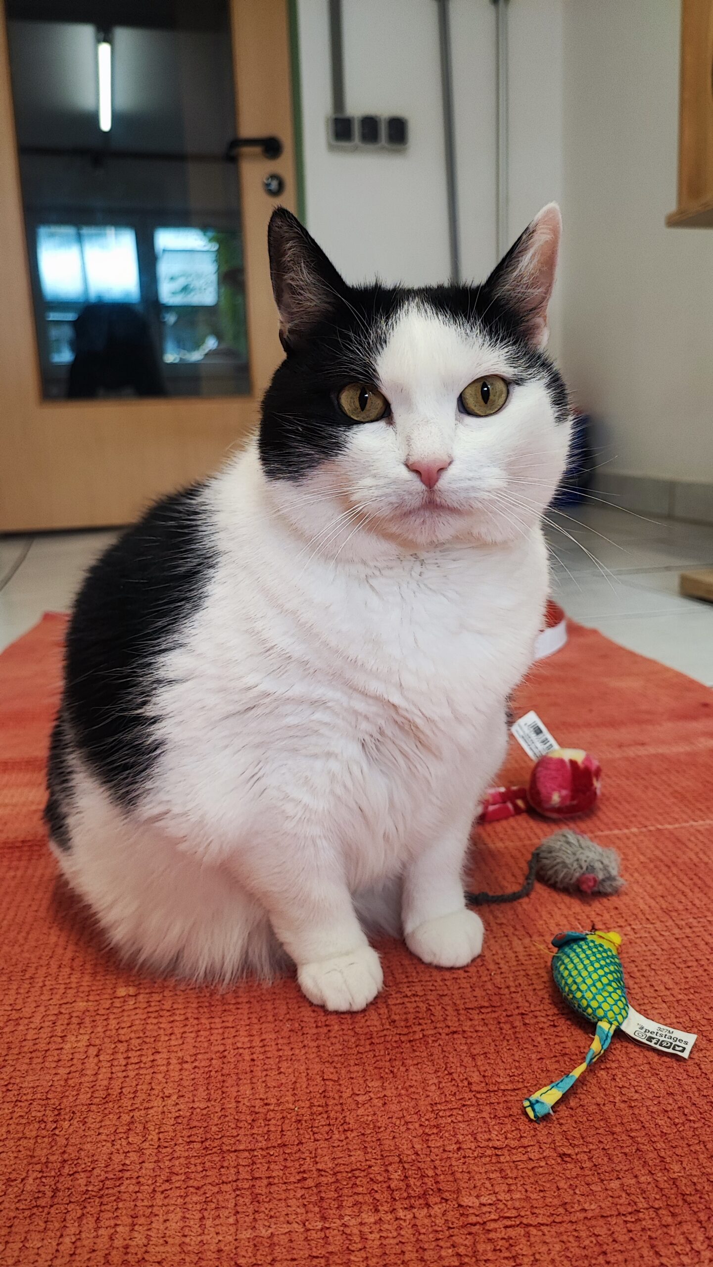 Rasse: Europäische Kurzhaar (weiblich, kastriert) schwarz+weiß