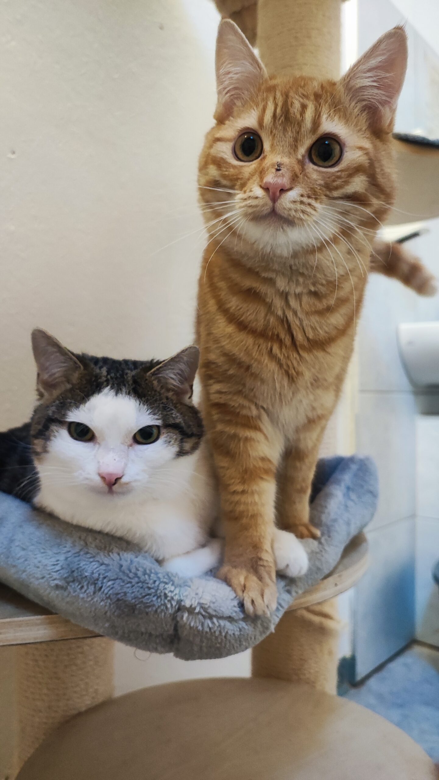 Rasse: Europäische Kurzhaar (männlich, kastriert) Mogli (rot), Balu (getigert weiß)