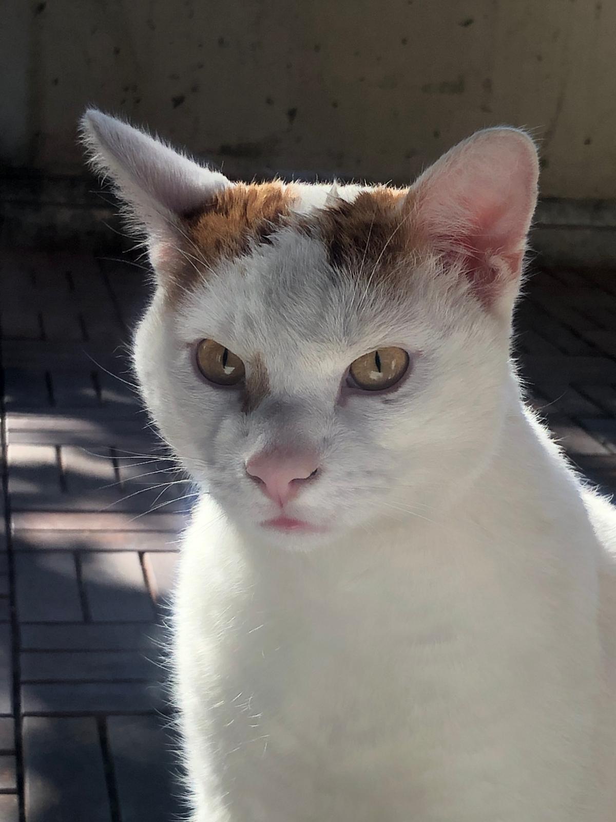 Beschreibung: Speedy ist Freigänger, kastriert, nicht gechippt. Weißer Kater mit rotgetigertem Schwanz und roten Fellflecken auf Rücken und Stirn.