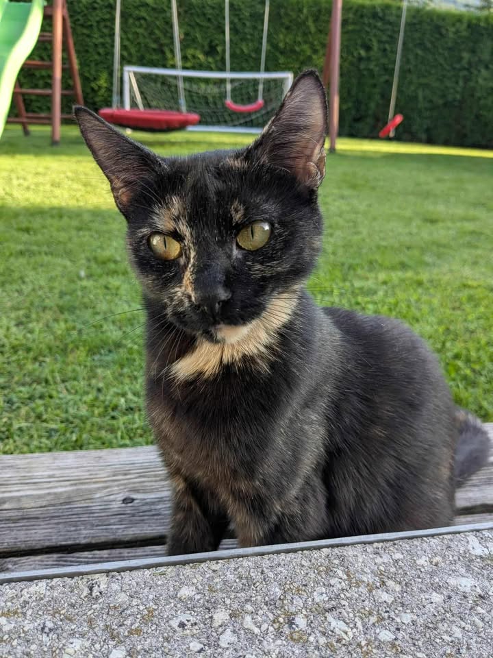 Beschreibung: Die 1,5-jährige Schildpattkatze Zelda ist Freigängerin, kastriert und gechippt. Zelda ist sehr neugierig, daher vermuten die Besitzer, dass sie versehentlich irgendwo eingesperrt wurde